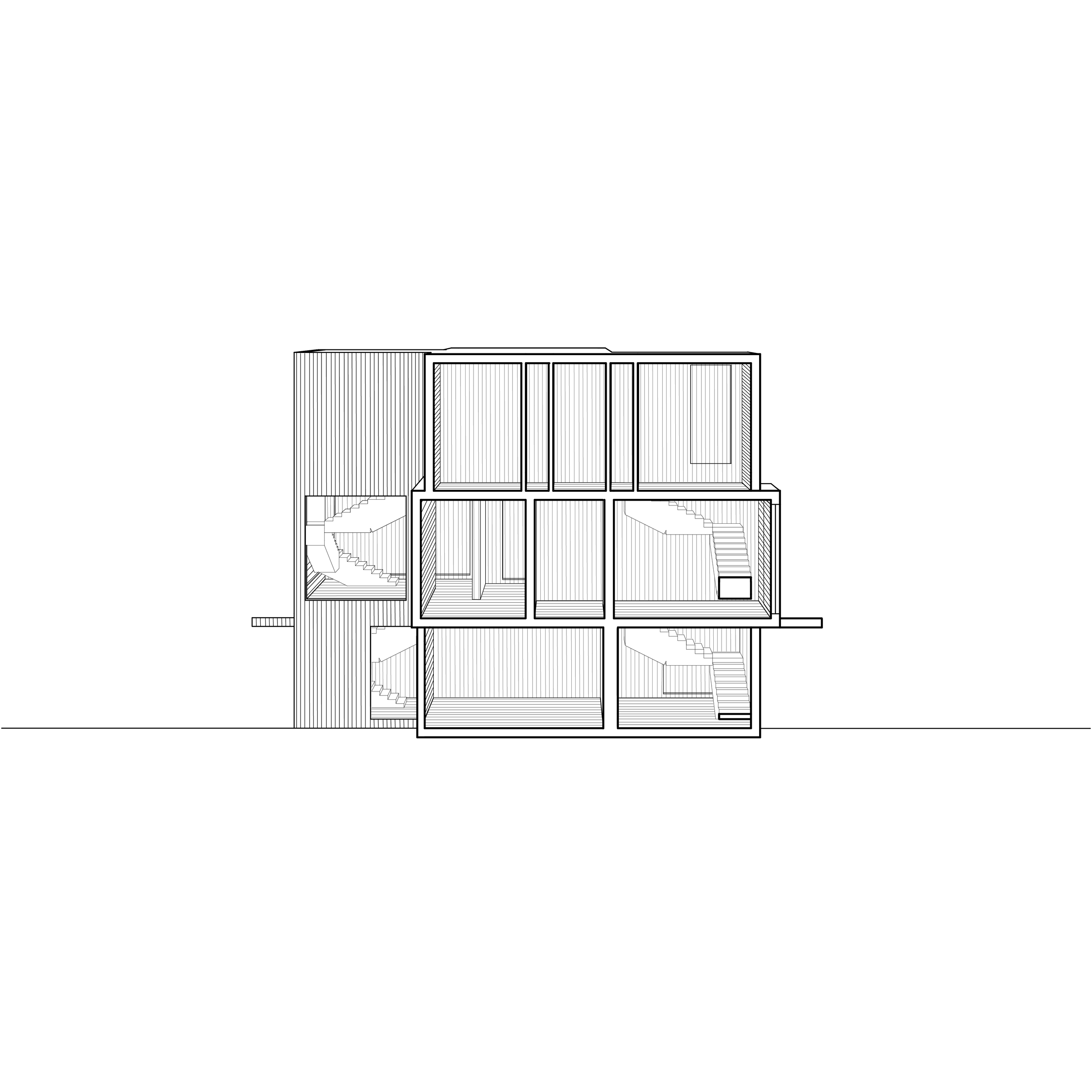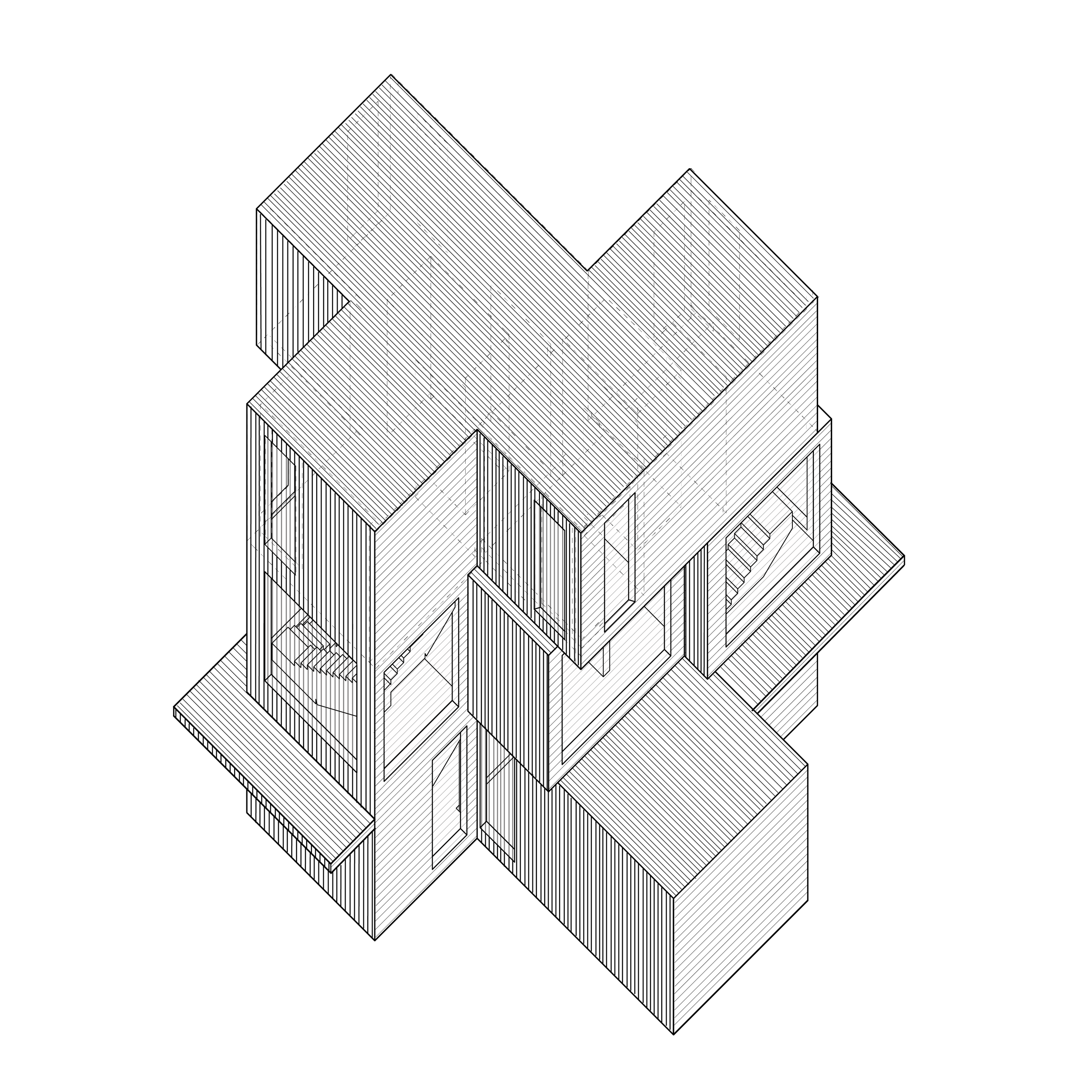 The cubic design of the concert hall serves to replicate the ripples in the water and the rocky man-made beach on which the building sits. The different cubic fragments that make up the whole are a combination of different sizes, geometries and angular configurations. The interior contrasts its monolithic facade with a complex network of interweaving floors, with angled stairs connecting them. Still, the structure maintains a fairly consistent material palette– consisting primarily of concrete and wood, which only further refer to the natural environment that inspired it.